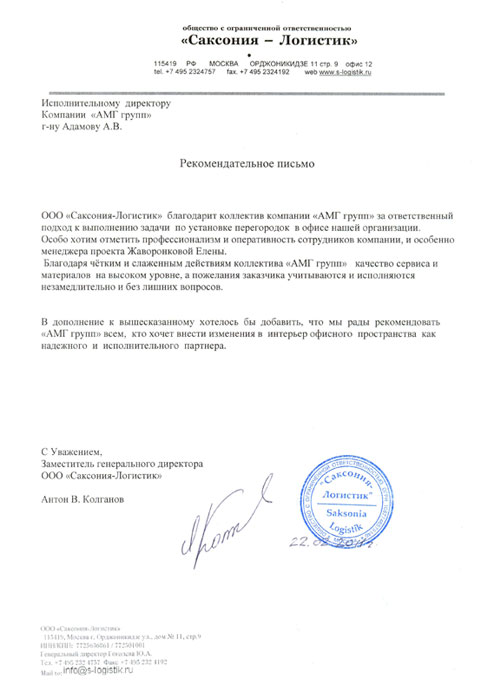 Получен отзыв от компании Саксония-Логистик